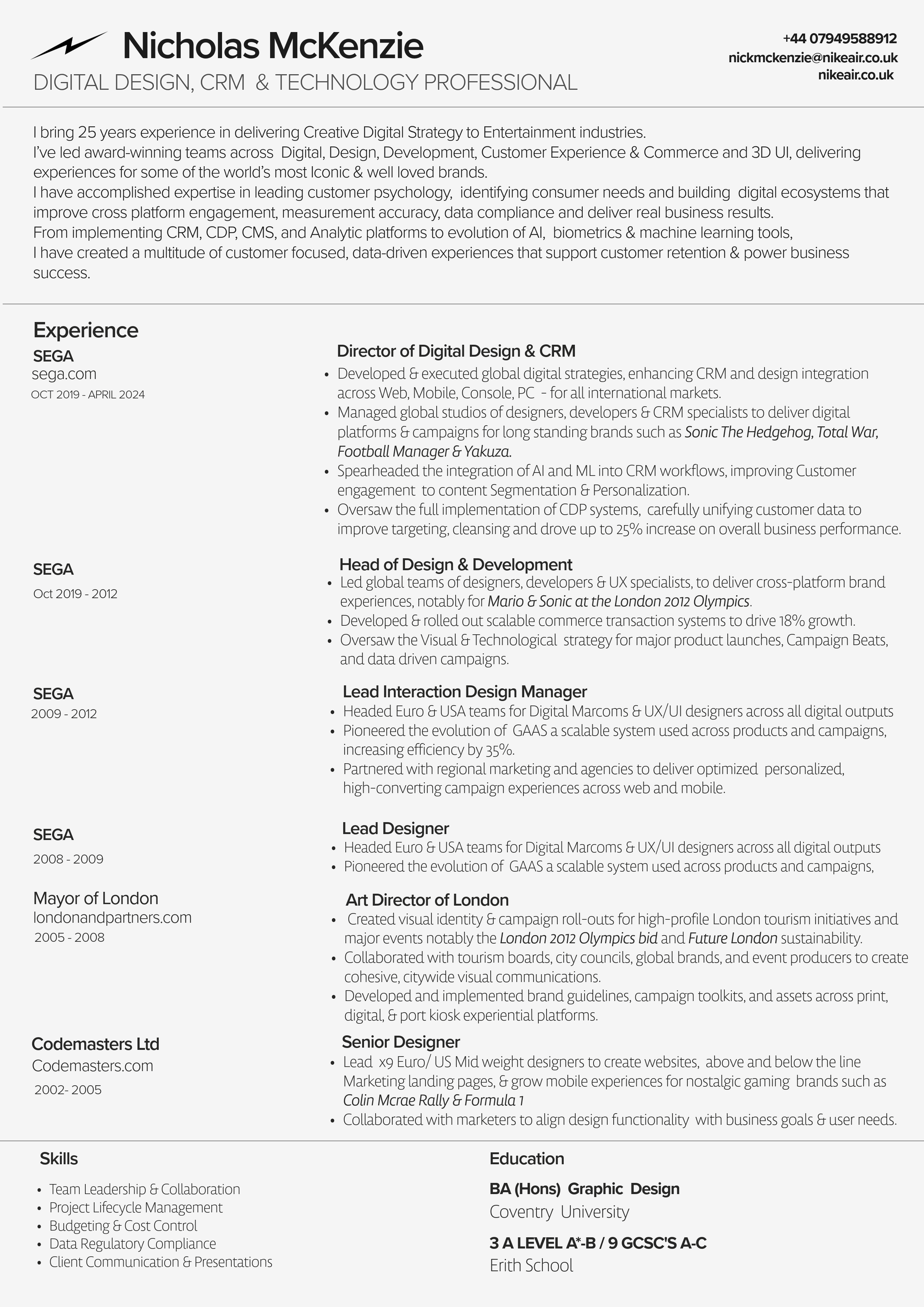 Expert in aligning global brands with creative, technology, and customer strategy—spanning UX/UI, CRM, CDP, and AI-driven personalisation—to deliver scalable platforms and world-class experiences for globally recognised brands